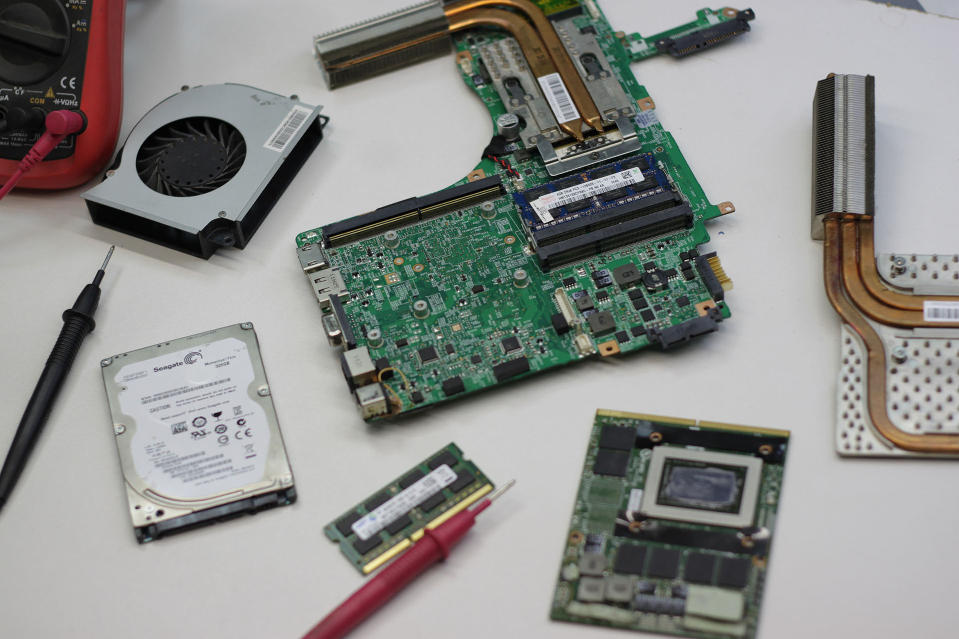 Realizamos el cambio de Hardware como disco duro, pantalla, teclado, touch pad, Motherboard, bocinas, Jack de energia y más.